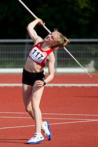 Einen Tag später legte Mia noch einen drauf und holte ebenfalls in der W14 aber diesmal mit dem Speer in 32,88 m den Titel. In diesem Wettkampf wurde Nele Huth 4. mit 25,81 m. Bei der WU18 wurde Jana Marie Lowka ihrer Favoritenrolle gerecht und gewann den Speerwurf mit 43,89 m. Im gleichen Wettkampf landete der Speer von Emilia Zimny bei 34,01 m und das bedeute Bronze. Nochmal Bronze gab es für Robin Rieß in der MU18 mit 47,65 m.