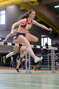Den Titel über die 60 m Hürden holte sich Gianina Gartmann im zweitschnellsten Rennen ihre Karriere in der Zeit von 8,62 sec vor Gesa Kratzsch (Friedberg), die nur 4 Hunderstel langsamer war. Im gleichen Lauf belegte die U20 Siegerin der letzten Woche Miriam Sinning Platz 4. Mehrere Berührungen mit Vanessa Grimm (LG Reinhardswald) unterwegs verhinderten eine bessere Zeit wie im Vorlauf (8.88 sec).