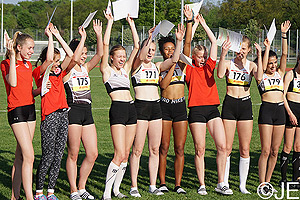 Im Wettbewerb der weiblichen U20 lieferten sich die Jahresbesten von der LAV Bayer Uerdingen/Dormagen und unsere Mädels ein besonders knappes Duell bis zur letzten Sekunde. Das 16-köpfige Team mit Maira Gauges, Charlize Boykin, Anna-Lena Peine, Maren Eberhard, Alanis de Thoré, Amelie Starck, Petra Dikic, Naomi Lemmer, Sanar Parmar, Katharina Plock, Emilia Zimny, Lilly Urban, Victoria Sade Adu, Jana Marie Lowka und Jenny Patrovsky hatte früh die Führung übernommen, die Konkurrentinnen blieben jedoch auf Tuchfühlung und eroberten nach zehn von zwölf Wettbewerben sogar die Führung. Doch mit einem starken Endspurt gab es die verdiente Goldmedaille.