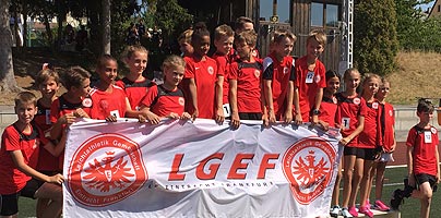 22 Jungen und Mädchen der LG Eintracht Frankfurt zogen als Junior- und Turboadler am 18. August auf den Sportplatz nach Hünfelden Kirberg.